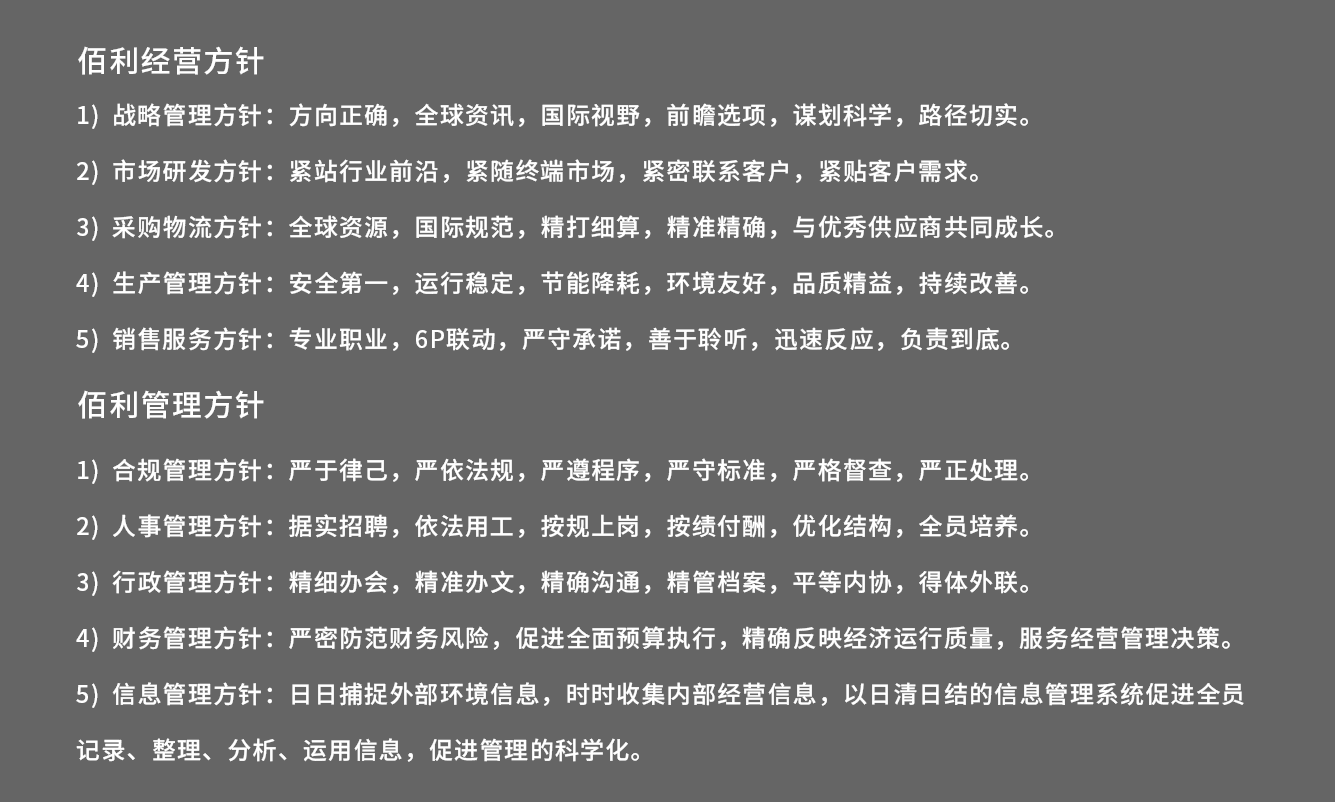 佰利經(jīng)營(yíng)方針