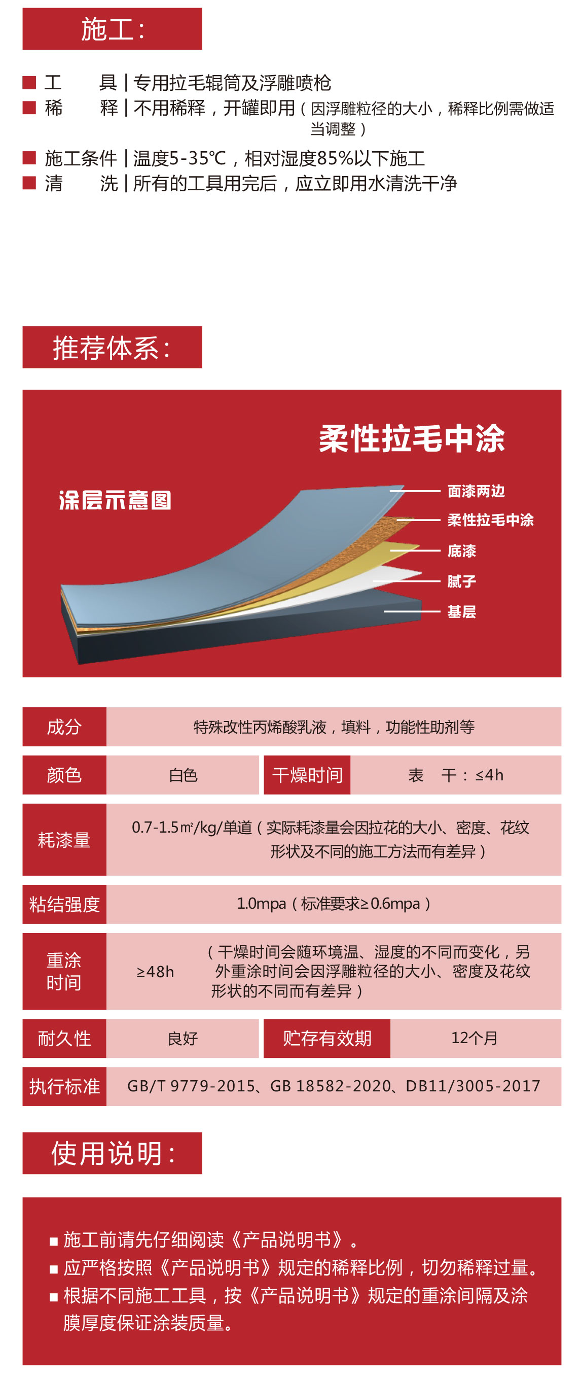 特殊改性的丙烯酸類(lèi)中層料,能為墻體提供立體裝飾效果。