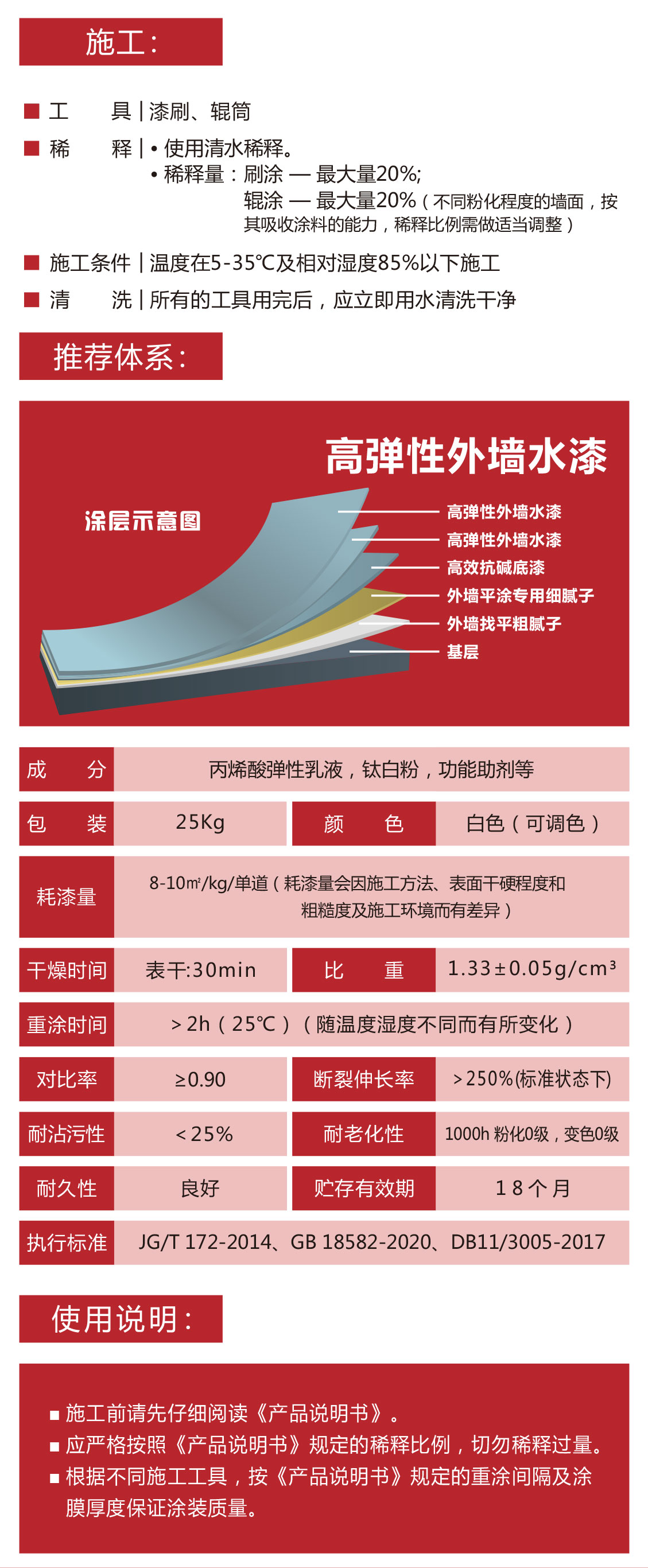 高彈外墻水漆是一款丙烯酸彈性外墻面漆,具有防水、抗裂縫及耐雨痕等功能。